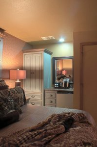 Enjoy luxurious surroundings and comfort with all the conveniences you need to make your stay enjoyable. The Sapphire Suite has warm lighting and inviting decor that melts away your accumulated stress and worry. True to its name, the corner Jacuzzi in the bathroom has custom, glass tile work of cool blue crossing the wall in a soothing pattern. Enjoy the sofa and the available space for lounging, or head to your king-size bed, turned out in luxurious bedding, that waits to embrace you. A queen-sized sleeper is also provided.